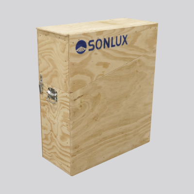 Transportkiste für POWERDISK, Holz, mit 2 klappbaren Tragegriffen