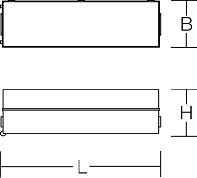 Transportkoffer für Leuchten bis max. 1.100 mm Länge, Kunststoff (ABS), 3 Scharniere, 2 Schlösser (abschließbar), 2 Räder, Tragegriffe, stapelbar, passend für Europaletten, Innenmaße: L 1.130, B 290, H 280 mm
