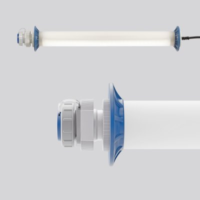 Schutzrohr Kunststoff (Polycarbonat) opal, schlagzäh. Endkappen aus Kunststoff (Polyamid) grau. Protektoren aus weichem Kunststoff an den Enden zum Schutz beim mobilen Einsatz. Homogene, weiche und blendreduzierte Ausleuchtung. Betriebsgerät integriert. Eine Steckdose ermöglicht den Anschluss weiterer Leuchten oder elektrischer Geräte. Schwere Gummischlauchzuleitung H07RN-F für hohe mechanische Belastungen mit Netzstecker. Durch Zubehör (optional) für Wand-, Decken- und Pendelmontage geeignet. Zur Leuchte ist immer ein Montagezubehör mit zu bestellen. Leuchte mit begrenzter Oberflächentemperatur nach DIN EN 60598-2-24.
