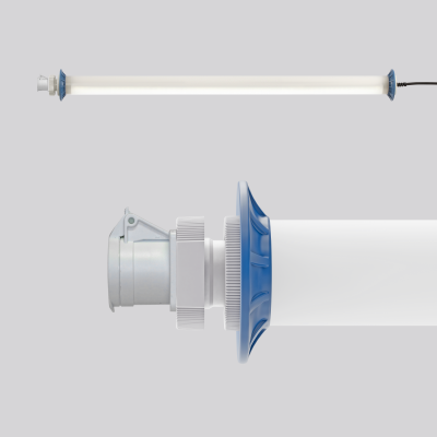 Schutzrohr Kunststoff (Polycarbonat) opal, schlagzäh. Endkappen aus Kunststoff (Polyamid) grau. Protektoren aus weichem Kunststoff an den Enden zum Schutz beim mobilen Einsatz. Homogene, weiche und blendreduzierte Ausleuchtung. Betriebsgerät integriert. Eine Steckdose ermöglicht den Anschluss weiterer Leuchten oder elektrischer Geräte. Schwere Gummischlauchzuleitung H07RN-F für hohe mechanische Belastungen mit Netzstecker. Durch Zubehör (optional) für Wand-, Decken- und Pendelmontage geeignet. Zur Leuchte ist immer ein Montagezubehör mit zu bestellen. Leuchte mit begrenzter Oberflächentemperatur nach DIN EN 60598-2-24.