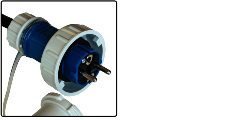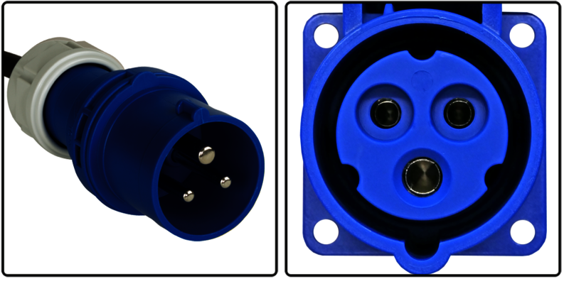 CEE, 230 V, 50/60 Hz, 2P+E, 16A, 6h, blau, IP44