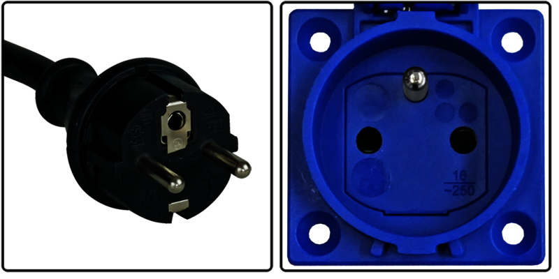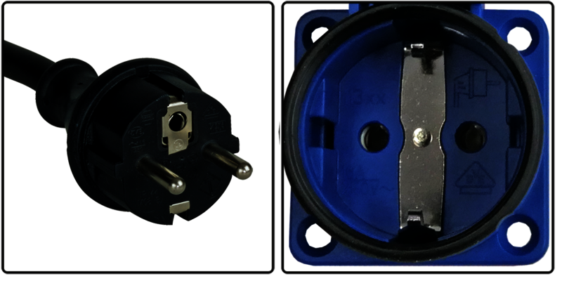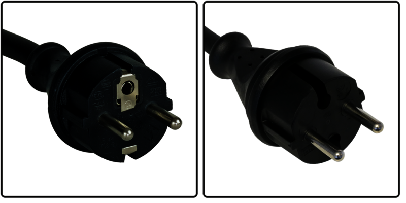 Stecker: CEE 7/7 (links), CEE 7/17 (rechts)