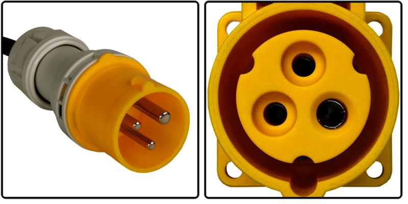 CEE, 110 V, 50/60Hz, 3P, 16A, 4h, gelb, IP44