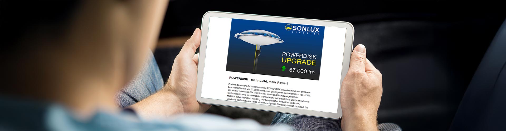 SONLUX-Newsletter informieren in regelmäßigen Abständen über Neuigkeiten, Produktupdates, Sonderaktionen und vielem mehr.