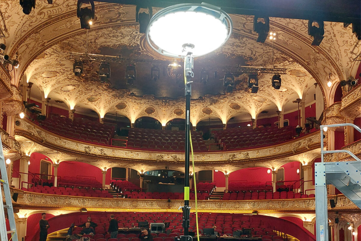 For the German-language premiere of the masterpiece "The Employees" by Olga Ravn at the Volkstheater Vienna, our POWERDISK large-area luminaire is in front of the curtain this time and not behind it. During the casting, it impressed the producers with its slim waist and even light distribution.